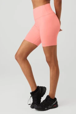 Meet the ultimate short for practice and pavement: the High-Waist Biker Short, made in our signature lifting, sculpting Airbrush fabric, with a high waist, moisture-wicking technology and 4-way stretch that moves with you. Equal parts forward and functional. Wear with a fave bra layered under a cute cropped hoodie or pair with an Alo statement tee.