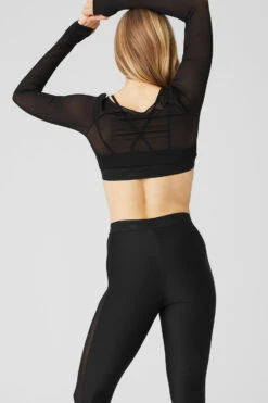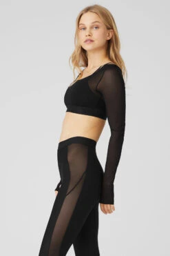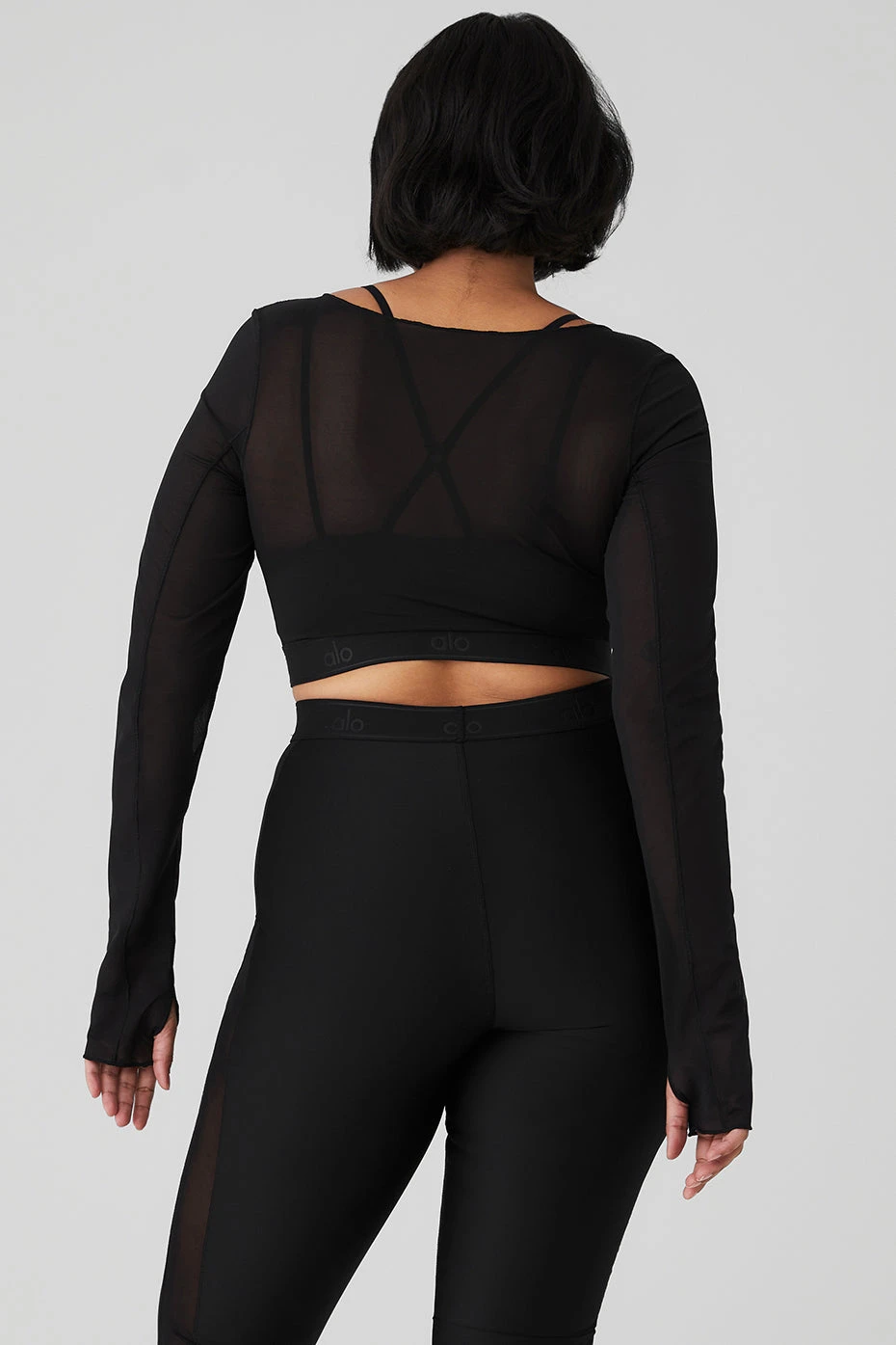 The Airlift Long Sleeve Ballet Dream Bra belongs center stage, thanks to a bold mix of sleek, practice-perfect Airlift and breathable mesh fabric. A low boatneck layers over a light-support bra with a debossed logo band. Create a stunning, head-to-toe look when you pair this with the matching legging.
