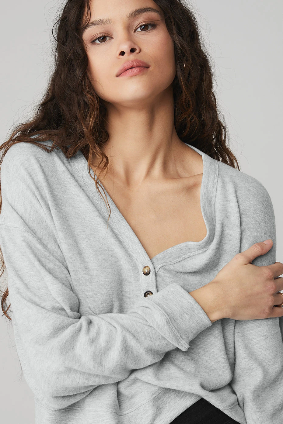 Sweet dreams are made of soft, breathable Alolux. The cashmere-soft Alolux Soho Crop Henley is a fresh take on the cult-fave Soho Pullover, with an updated Henley neckline, cute cropped length & raw-edge seams. We love to pair this slightly oversized cover with a high-waist statement legging & squeeze in a flow on busy days.