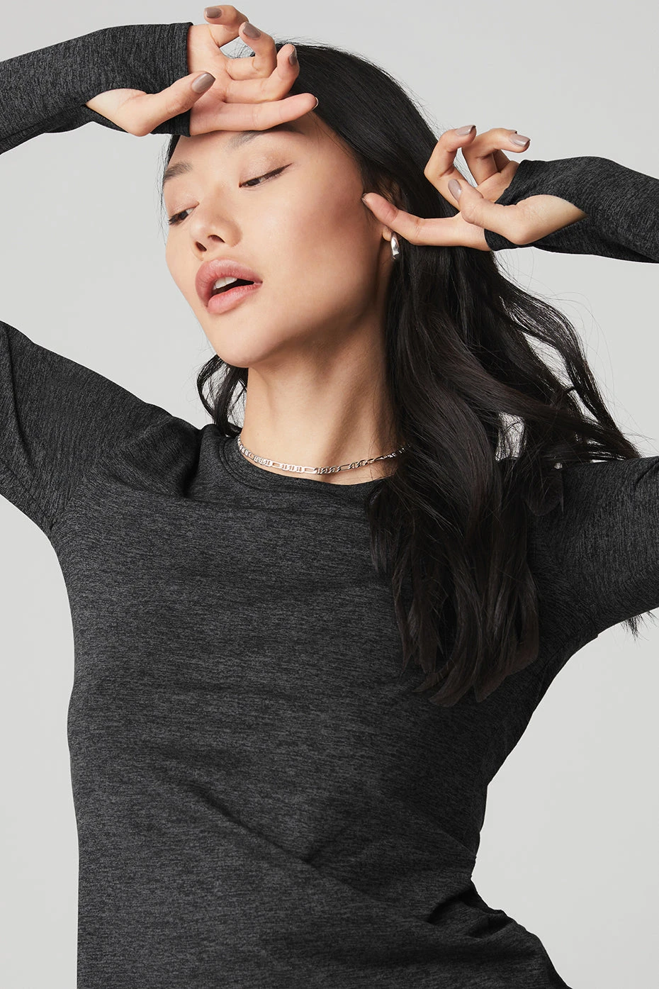 Bring the feels. The Alosoft Finesse Long Sleeve is made with soft performance jersey and has a comfy, relaxed silhouette, so you can stay cozy and on-trend from yoga to lounge. Looks so good layered under jackets.
