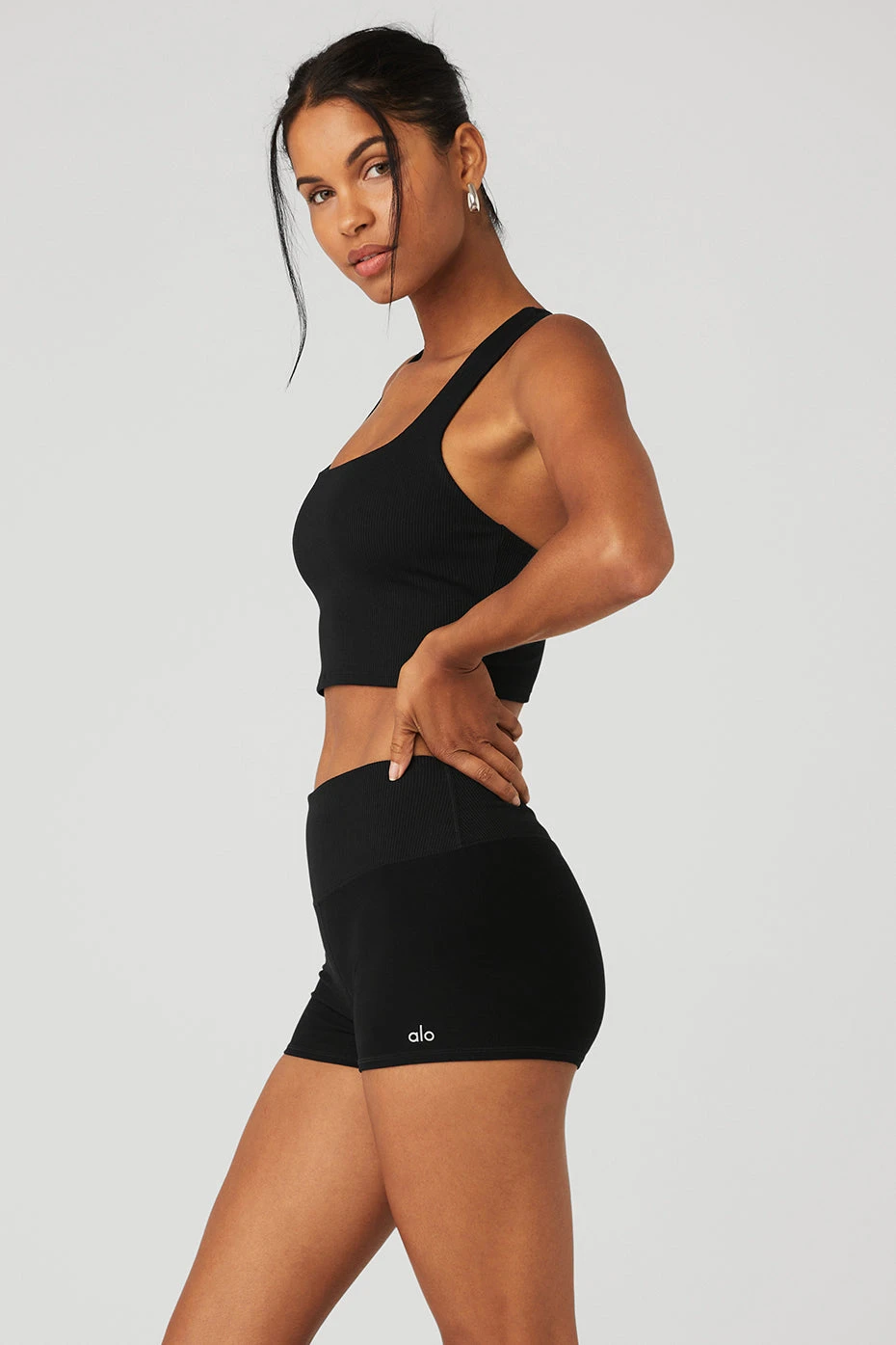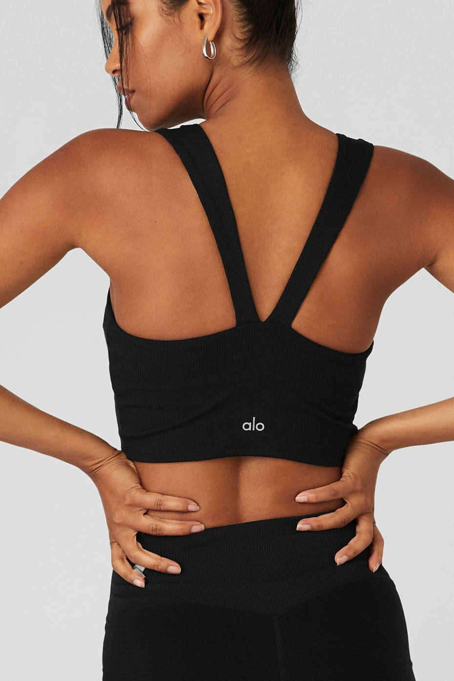 This look is literally everything. Made from soft, super-breathable Alosoft in a supportive, ribbed fabrication, the forward Chic Bra Tank, features a V-racerback, rounded square neckline & shelf bra lining for all-day support. We love it with a cool moto legging.