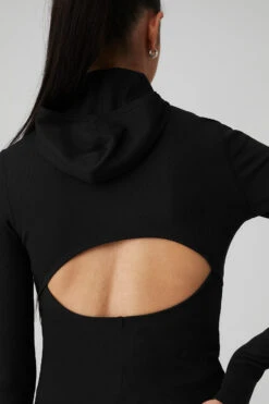 Chilly weather? No problem. Layer up in the Alosoft Ribbed Frontrunner Long Sleeve — a full-length coverup with a sport-ready scuba hood, thumbholes, and a super-soft feel. A cute, keyhole cut out at back is designed to stay comfortably dry on long runs and beyond. Wear it over a fave Alo bra with high waist leggings and go far.
