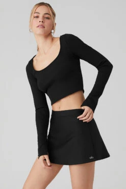 Seriously cool, all-day wearable & so good solo or layered. The Alosoft Ribbed Show Stopper Long Sleeve is the comfiest way to get to-and-from, made with super-soft & contouring ribbed Alosoft fabric in a full length, fitted silhouette. Hook up this new staple with on-trend bikers or cool capri leggings and head out.