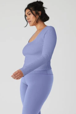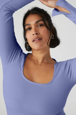 Seriously cool, all-day wearable & so good solo or layered. The Alosoft Ribbed Show Stopper Long Sleeve is the comfiest way to get to-and-from, made with super-soft & contouring ribbed Alosoft fabric in a full length, fitted silhouette. Hook up this new staple with on-trend bikers or cool capri leggings and head out.