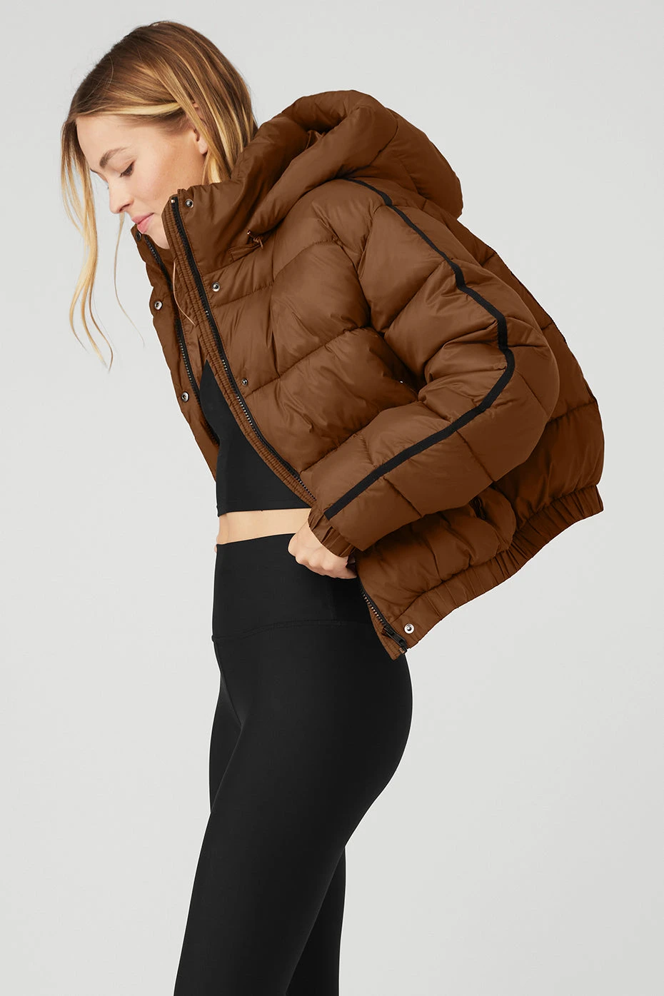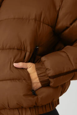 Your new outerwear obsession: the Aspen Love Puffer Jacket. Crafted with high-tech ripstop fabric, this regular-length puffer locks in warmth during cold weather months. Snap front buttons and side zip pockets keep this jacket on-trend while the removeable hood lets you adjust your cozy look as desired.
