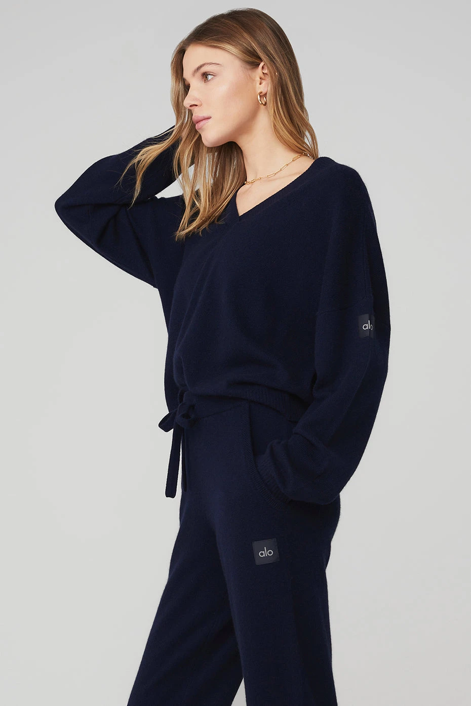 Your sweater stash isn’t complete without the Cashmere Jet Set V-Neck Pullover. This sweet, dropped-shoulder pullover features a V-neck, cool sleeve details, and ribbed cuffs & waistband. Wear it with literally everything and stay cozy in the cold.