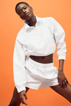 Upgrade your coverup collection with the Cropped ¼ Zip Alumni Pullover, cut from cool crinkle woven fabric that’s perfect for to-and-from yet easy enough to lounge in. Make it pop with leggings, biker shorts or a cute tennis skirt.