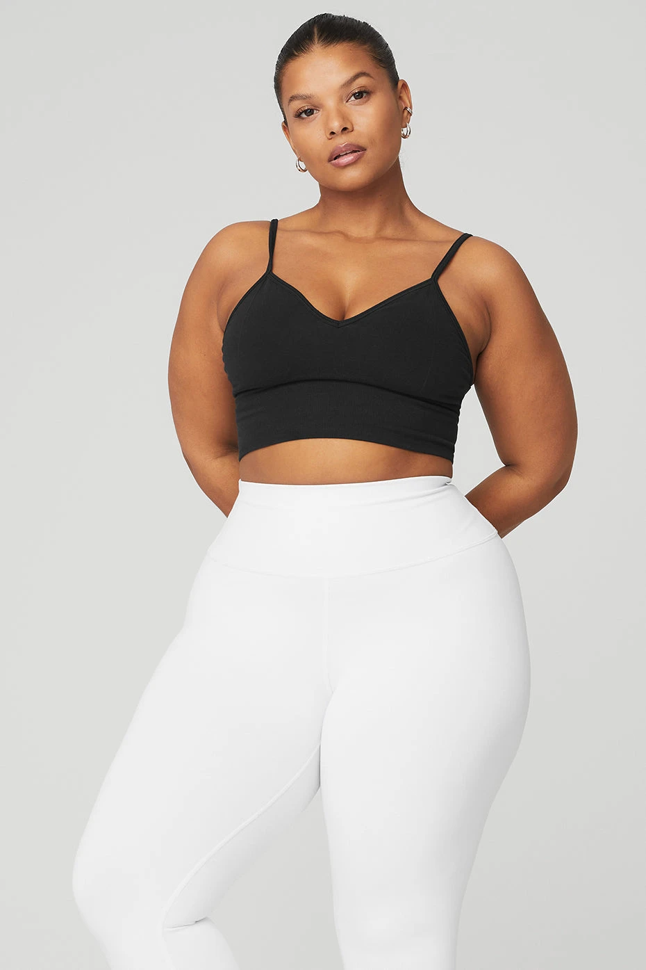 The super-soft, low-impact Delight Bralette is an on-the-go staple with a forward low V-neck, delicate, adjustable straps and snug, longline silhouette. A ribbed underband provides extra compression & support. Wear it to the studio, then layer it under a tank post-practice.
