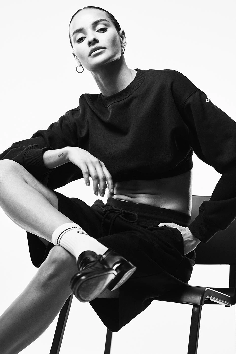 Oversized, cropped, and cinched just right, the fleece Devotion Crew Neck Pullover is the perfect blend of cozy and street-ready. Tuck it into your bra for maximum volume.