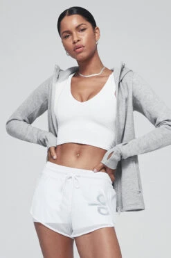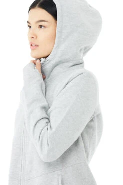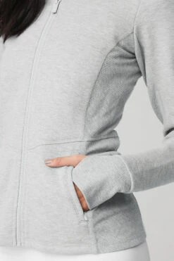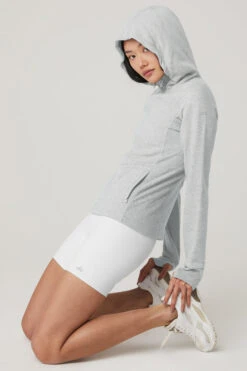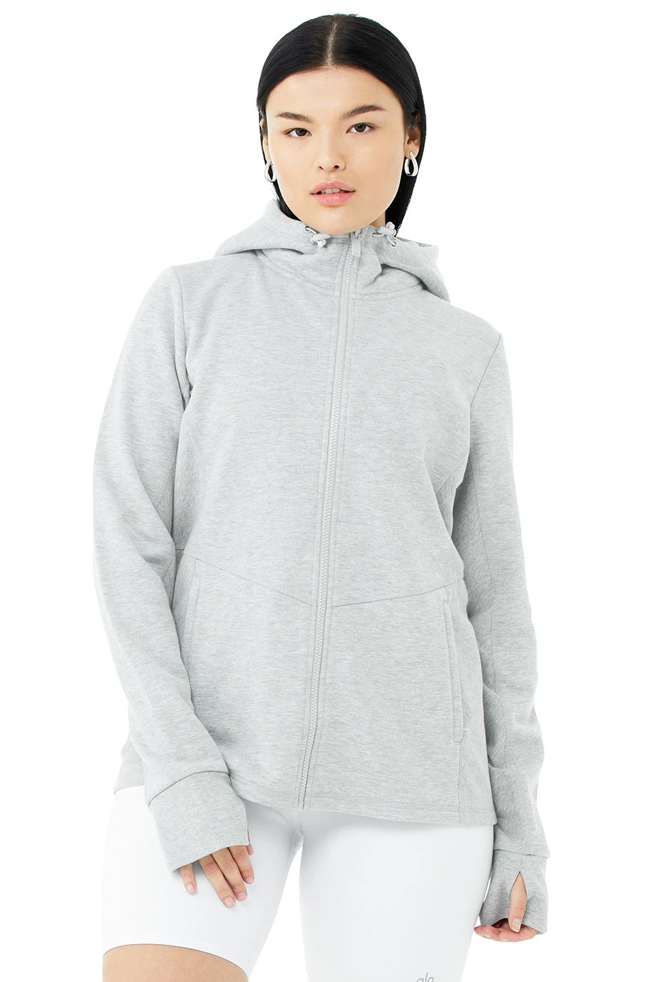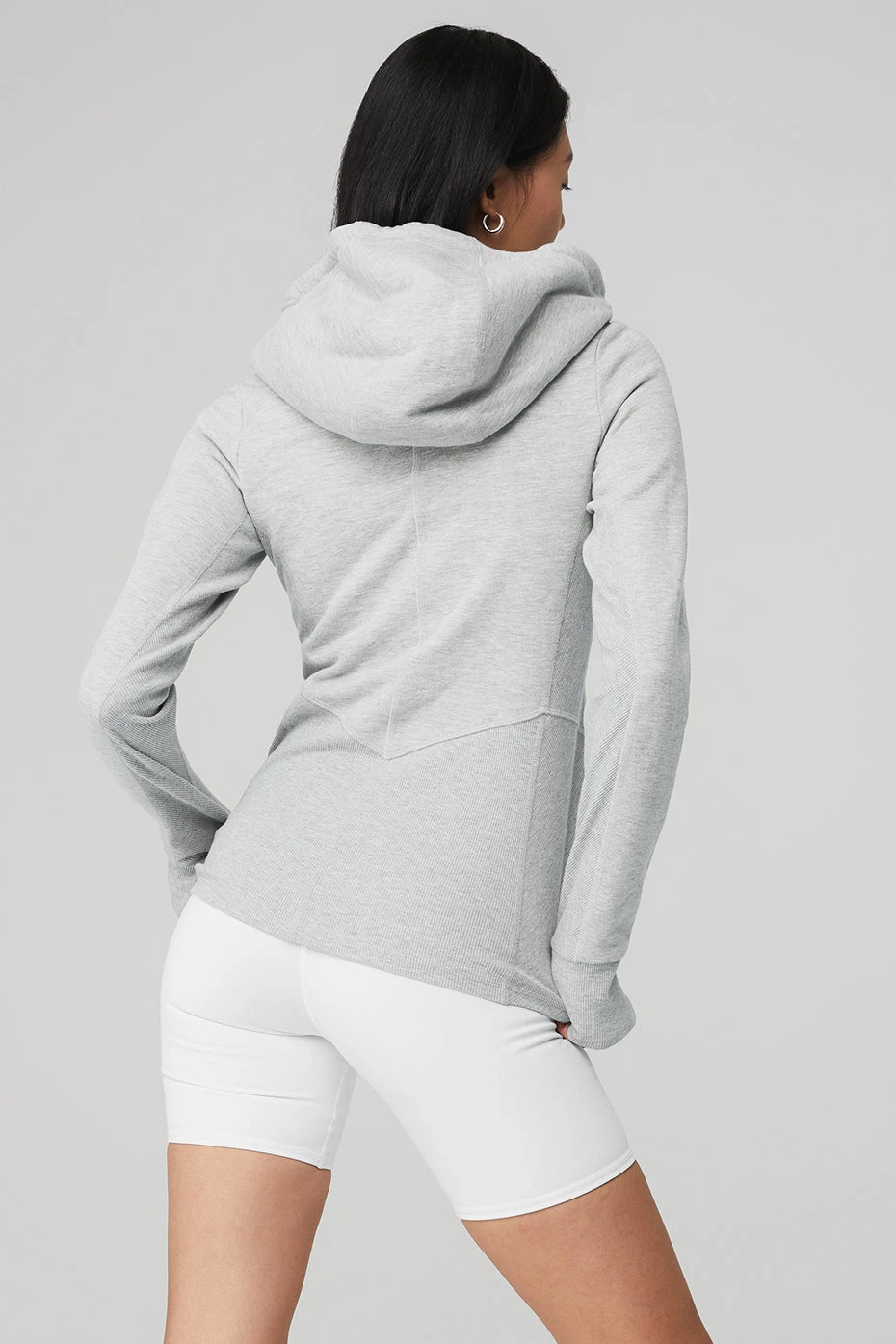 So sleek. So contouring. So ready to run, lift, flow & move in any way you choose. The Foundation Zip Hoodie in light fleece is the perfect blend of beauty & function, with chevron ribbed detailing, handy thumbholes, zippered side pockets & a three-panel hood with bungee closures.