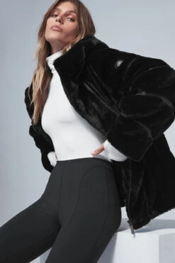 There are no words for how beautiful this look is, but we’ll try: the Knock Out Faux Fur Jacket is an instant icon, courtesy of luxe faux fur and faux leather inset design. Welt zip pockets keep your stuff secure and a sleek, satin-like lining completes the look. Layer over cashmere, Alolux or just your fave bra — everything works.