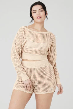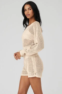Easy. Breezy. Beyond. Meet the Open-Knit Cropped Chase the Sun Coverup — a lightweight, open-knit cover perfect for the beach, barre, or anywhere else. A relaxed fit with a loose, scoop neckline that can be worn off the shoulder and plays well with everything in your closet. Layer over a bikini top or sports bra.