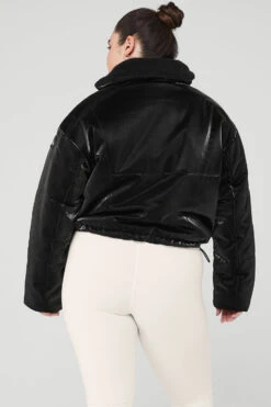 This cold-weather classic has got us feeling starstruck. The Orion Cropped Puffer hits at the natural waist and features a cinched bungee drawcord for keeping things toasty. It’s made from faux leather in a satin finish that’s equal parts warm and incredibly luxe. On-trend cropped silhouette.