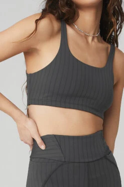 Pinstripe, please. Our Pinstripe Bra is the perfect new print & fabric for the season. A pinstripe design is knit into super-soft performance fabric for a comfy low-impact bra perfect for practice and everyday wear. Pair with the High-Waist Pinstripe Zip It Flare Legging!