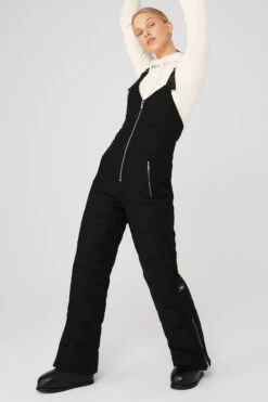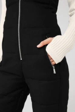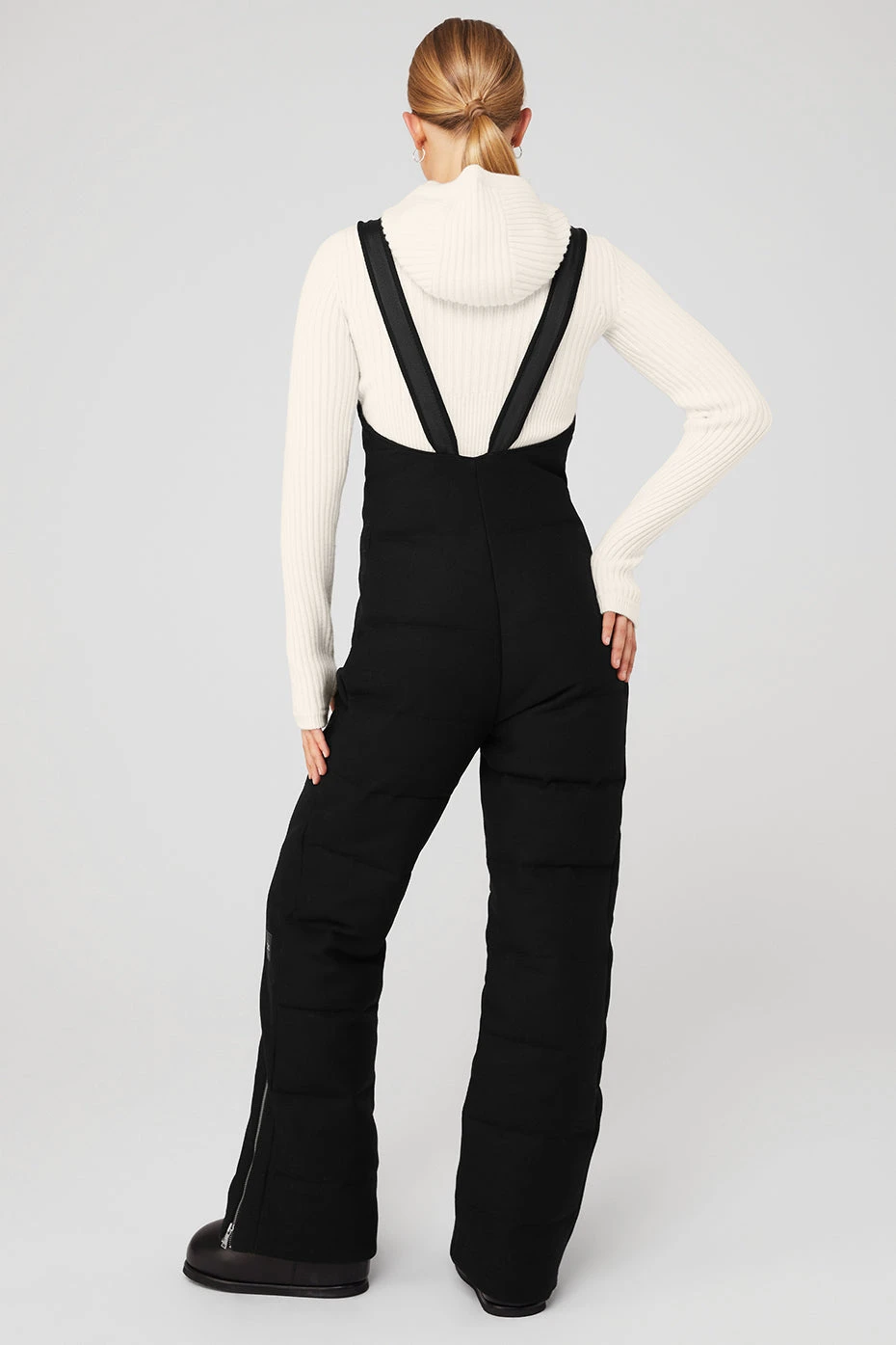 Designed for mountain slopes and city streets, the Polaris Puffer Overall is performance-equipped for snowy weather and versatile enough for an elevated, statement look. Flared trousers legs and a distinctive V-cut front are enhanced with essential technical details: secure adjustable shoulder straps, center zip entry, zippered front pockets and ankles with gaiters to keep feet dry in snow. Made from luxe, ultra-warm wool puffer fabric, it makes a great base layer for matching with long sleeve tops and cashmere sweaters.