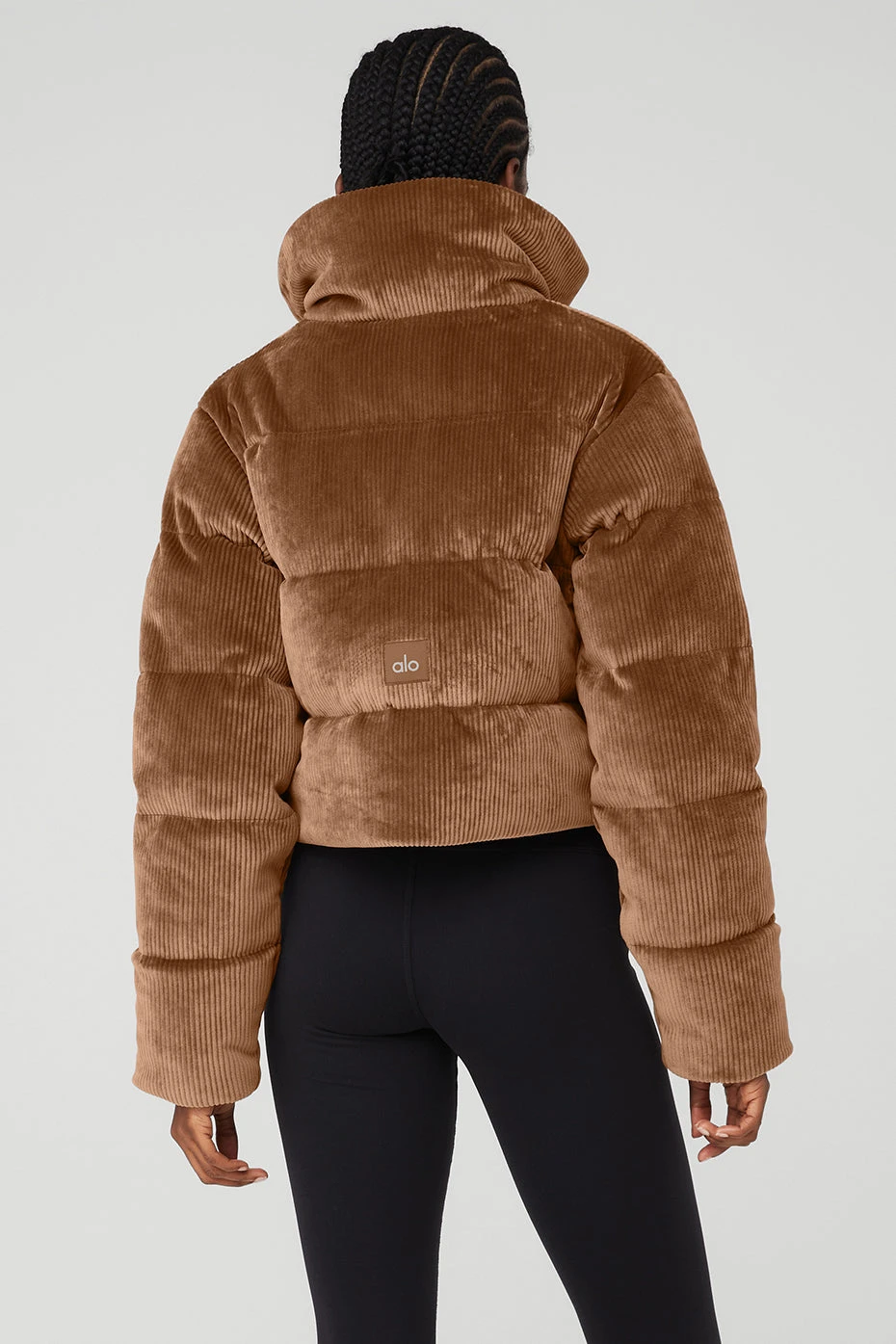 Ribbed Velour Gold Rush Puffer – Cinnamon Brown