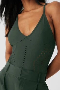 Breathe new life into your layers with the Seamless Open Air V-Neck Bodysuit. Ultra-breathable seamless fabric gets extra airiness with body-mapped sheer, airy mesh at the waist and open mesh detailing at underbust, paired with a classic V-neck and adjustable straps for the perfect fit. Keep things breezy with the addition of a go-to tennis skirt.